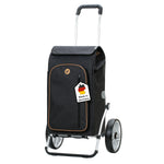 Mit einer Spurbreite von 50 cm und dem Raddurchmesser von 25 cm sind Sie mit diesem Trolley bestens für holprige, unebene Wege aber auch Treppenaufstiege gerüstet. Die Räder des Royal Shoppers bestehen aus stabilem Kunststoff und sind obendrein noch kugelgelagert. Somit sind sie nicht nur besonders leicht, sondern ebenfalls leise laufend. Dank der Schiebearretierung ist das Rad mit nur wenigen Handgriffen demontiert.