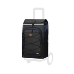 Vor mehr als 3 Jahren habe ich mir einen Andersen Einkaufsroller gekauft. Das Fahrgestell ist immer noch im neuwertigen Zustand, obwohl mehrmals in der Woche im Gebrauch. Schon bei der ersten Bewertung habe ich die große Spurbreite von 58 cm bemängelt, das ist überall unpraktisch, besonders weil ich regelmäßig im Münchner ÖPNV unterwegs bin. Nun hat aber der Verschluss der Tasche (Reisverschluss) aufgegeben, also musste eine neue Tasche für den Einkaufsroller her. ich habe mich für eine Tasche entschieden, die mit 72 L noch 10 Liter mehr fasst als die alte Tasche. Passt hervorragend auf das alte Fahrgestell. Es gibt eine integrierte Regenschutzplane, 2 Seitentaschen, die sich für lange Gegenstände eignen, ein großes Kühlfach wo sogar Pizzakartons (für 30cm Pizza) reinpassen, sonst eher flaches Kühlgut. Vor dem Kühlfach ist noch ein Gummizugnetz wo sich Packungen mit Küchenrollen oder Klopapier stauen lässt. Im Inneren ist eine Tasche für Kleinkram. Die Einkaufstasche ist hervorragend verarbeitet und lässt auf viel Jahre Nutzung hoffen, weil der Verschluss der Einkaufstasche jetzt nicht mehr per Reisverschluss sondern mit einem Riemen funktioniert. Dieser Riemen ist auch der einzige Kritikpunkt, wenn nämlich die Einkaufstasche sehr voll (evtl. etwas mehr als 72 L) wird ist er zu kurz. Siehe Foto. 10 cm mehr Riemen und die Einkauftasche wäre perfekt und mit 5 Sternen bewertet worden.